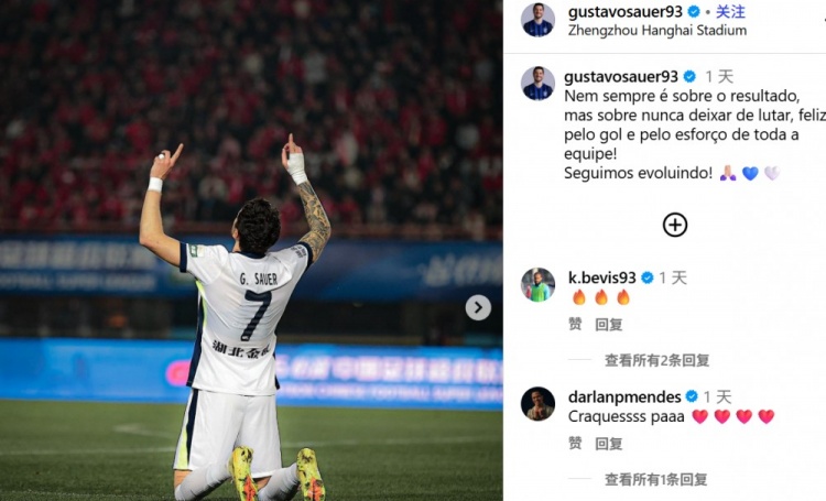 直播吧3月24日訊 正在武漢三鎮(zhèn)客場(chǎng)1-1戰(zhàn)平河南隊(duì)后,此役破門的三鎮(zhèn)外援紹爾更新了社媒。