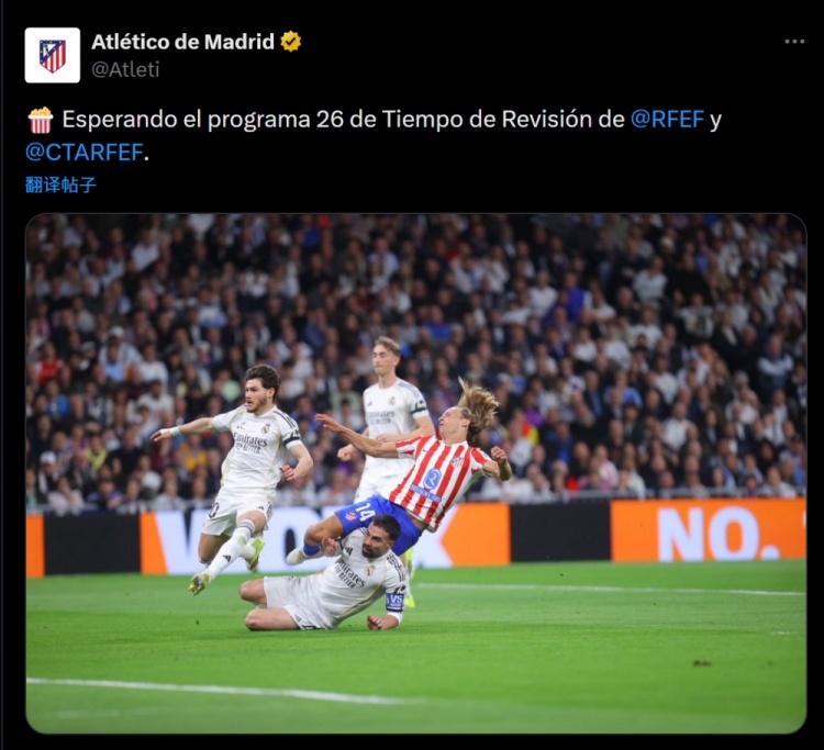 馬競(jìng)對(duì)這一判罰感到不滿,官方社媒曬出略倫特射門時(shí)被鏟的照片,配文:“等待西班牙足協(xié)和裁判技術(shù)委員會(huì)的第26期裁判評(píng)議?!?/p>
