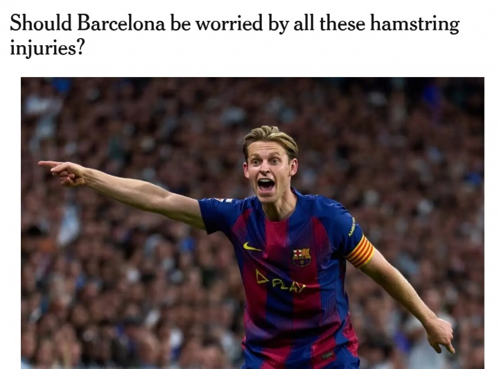 直播吧02月28日訊 The Athletic記者Pol Ballús撰文談到了本賽季巴薩的傷病問(wèn)題,德容近期再次遭遇傷病打擊,引發(fā)了人們新的擔(dān)憂。