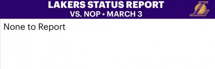 無人上榜傷病報告,湖人將全員健康出戰(zhàn)。