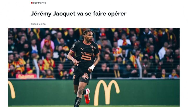雷恩足球俱樂部祝愿他早日康復(fù)。