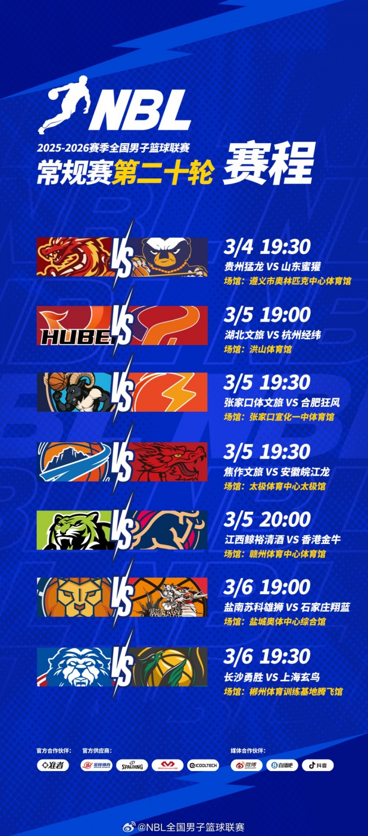 【賽程】NBL常規(guī)賽第二十輪將于3月4日-3月6日進行!