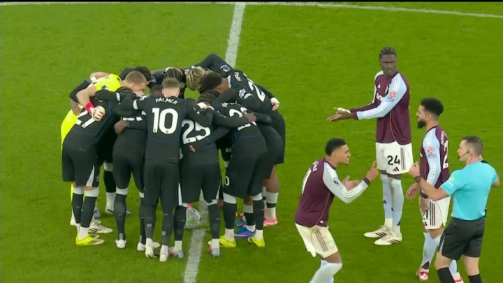 切爾西的球員們圍在中圈喊話助威,將皮球圍在了中間,奧納納、沃特金斯都向裁判抱怨切爾西的行為,現(xiàn)場的維拉球迷也發(fā)出了噓聲。