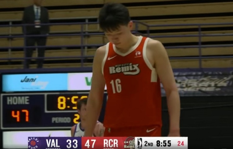 GIF-楊瀚森弧頂妙傳肯特上籃被干擾球