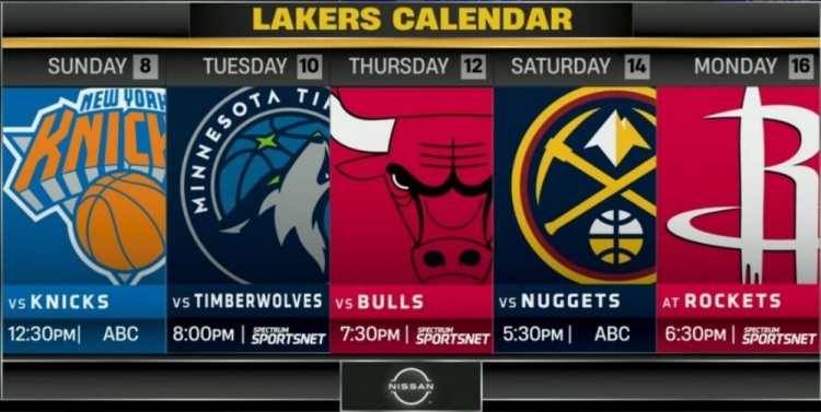 湖人后續(xù)5場(chǎng)比賽的賽程如下: