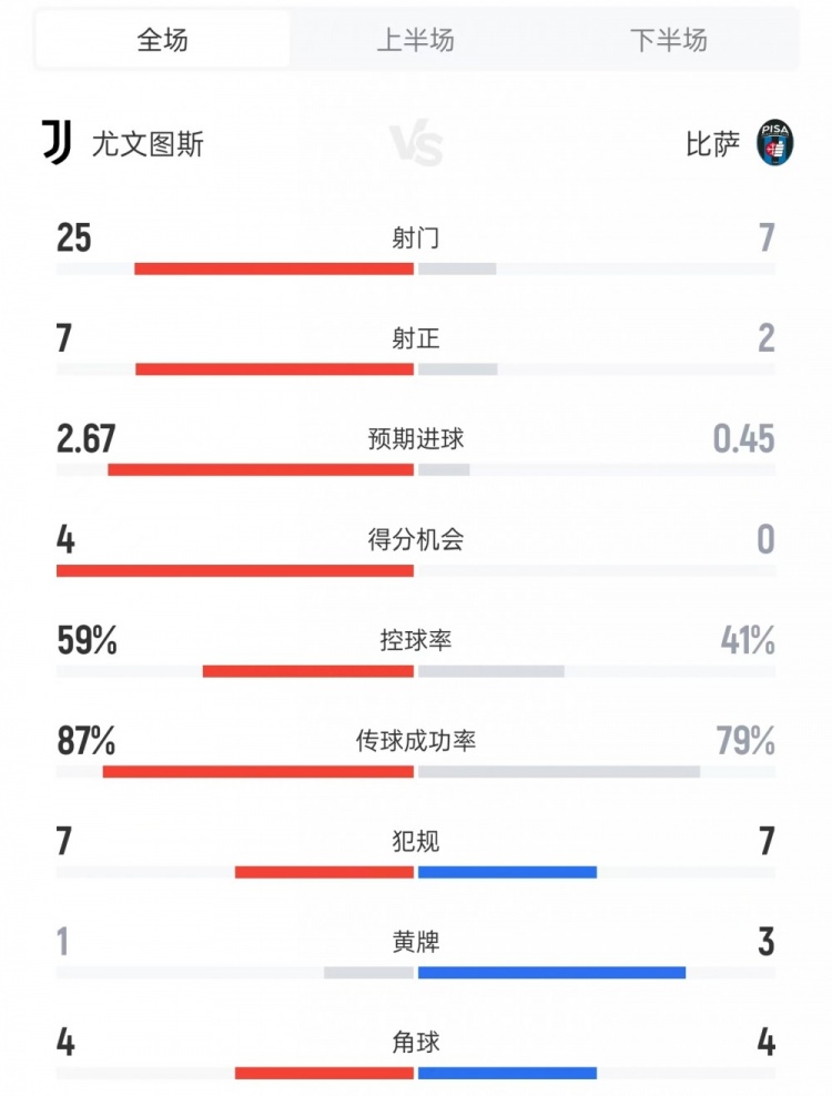 尤文對(duì)陣比薩數(shù)據(jù):