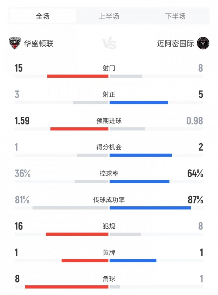 華盛頓聯(lián)vs邁阿密國際數(shù)據(jù):