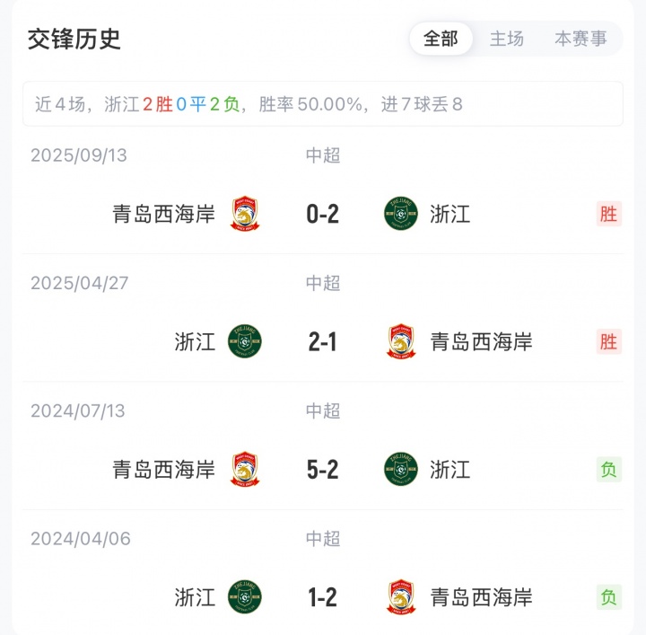 上賽季中超,浙江42分排名第7,青島西海岸40分排名第9。本賽季中超,浙江-5分開局,青島西海岸未被罰分。