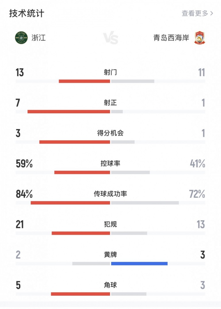 直播吧3月8日訊 新賽季中超首輪,浙江隊(duì)主場(chǎng)2-0擊敗青島西海岸。全場(chǎng)比賽數(shù)據(jù)統(tǒng)計(jì)方面,浙江隊(duì)也占據(jù)了一定的優(yōu)勢(shì)。
