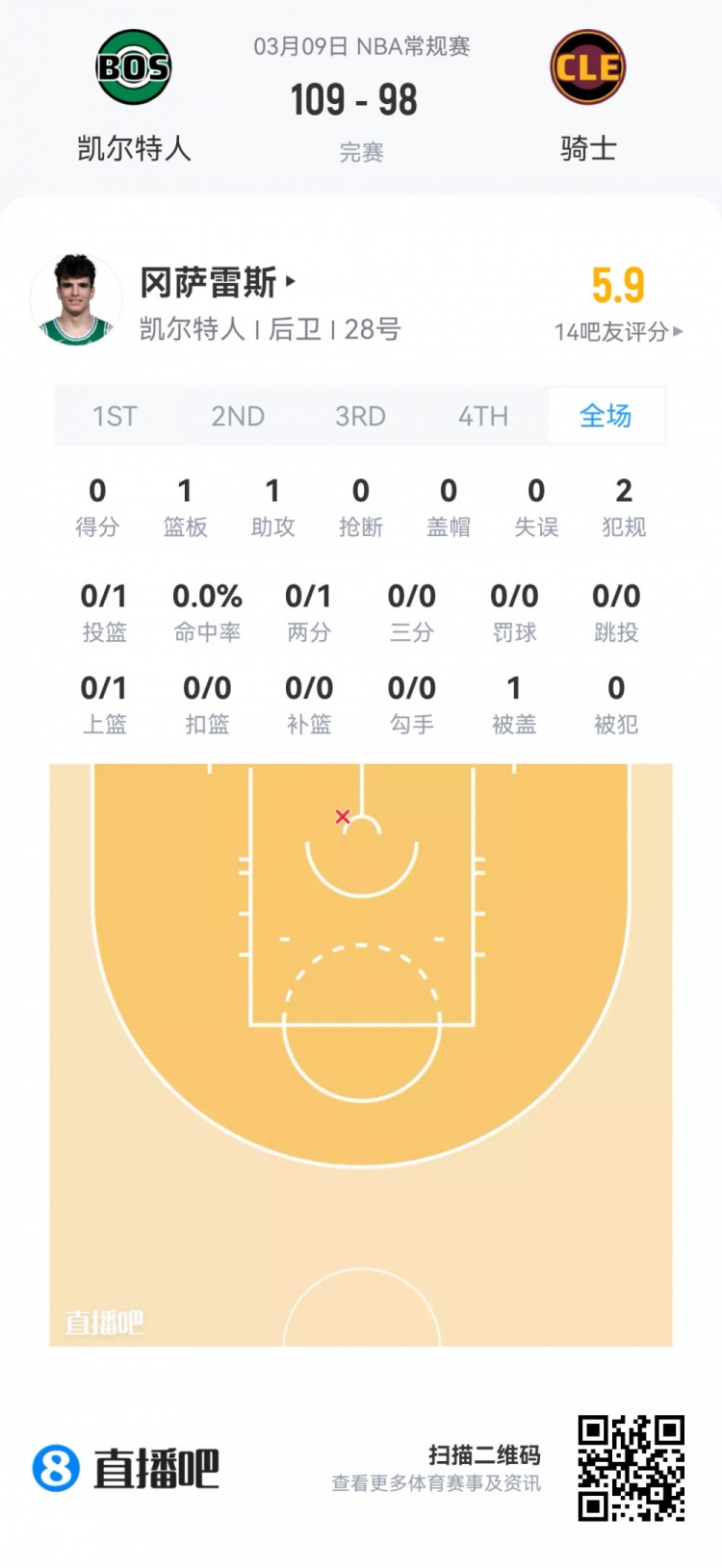 凱爾特人首輪28號秀岡薩雷斯 登場7.1分鐘