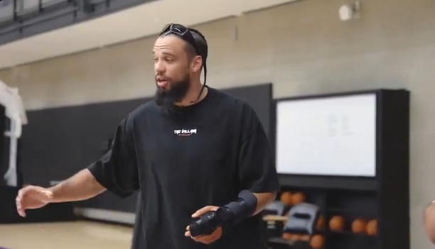 狄龍?zhí)岬綄?duì)小卡說(shuō)垃圾話沒(méi)用,小卡只會(huì)回復(fù)“放松點(diǎn),兄弟,打球吧,來(lái)吧”,試圖掐他推他用身體撞他,小卡還是說(shuō)“喲哥們,你就打球吧”,然后小卡走過(guò)去就是一記后仰跳投。