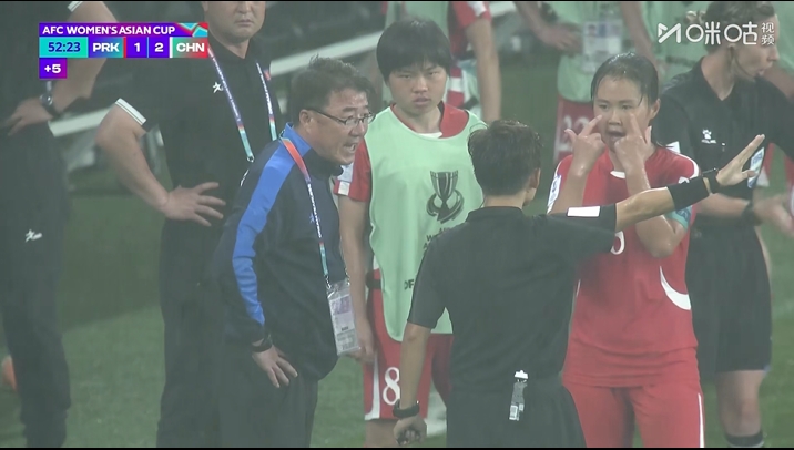 直播吧03月10日訊 中國女足在昨晚的亞洲杯小組賽中2-1逆轉(zhuǎn)朝鮮女足,奪得小組第一。上半場補時階段,裁判改判中國女足反超進球有效,朝鮮女足不滿判罰一度拒絕比賽長達4分鐘。