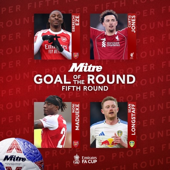 直播吧3月10日訊 足總杯公布賽事第五輪最佳進(jìn)球候選,埃澤、柯蒂斯·瓊斯、馬杜埃凱和肖恩·朗斯塔夫的進(jìn)球入選。