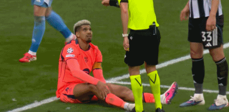 在丟球前,巴薩前場進攻,阿勞霍場上到對方底線但沒能碰到球,紐卡獲得球門球。阿勞霍從場外爬到場內(nèi)壓腿,賽后在接受采訪時他表示自己當時抽筋了,裁判制止了他的行為。